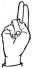 На ћирилици написано БЛАЖА РАДОВАНОВИЋ састоји се из 16 слова [?]. Исписано ћириличном једноручном азбуком за глувонеме: